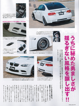 5月10日発売のオートファッションインプ 6月号にVERTICE DESIGN E92 M3が2ページ紹介されました。 《うちに秘めた勇ましさが揺るぎない風格を醸し出す!!》という表題で特集されました。 見れば見るほど美しさのなかに躍動感が見いだせるハイセンスなデザインという最高の賛辞をいただき 本当にありがたいです。